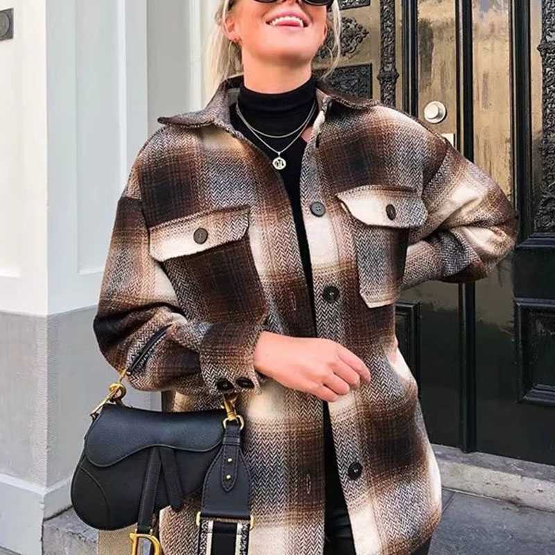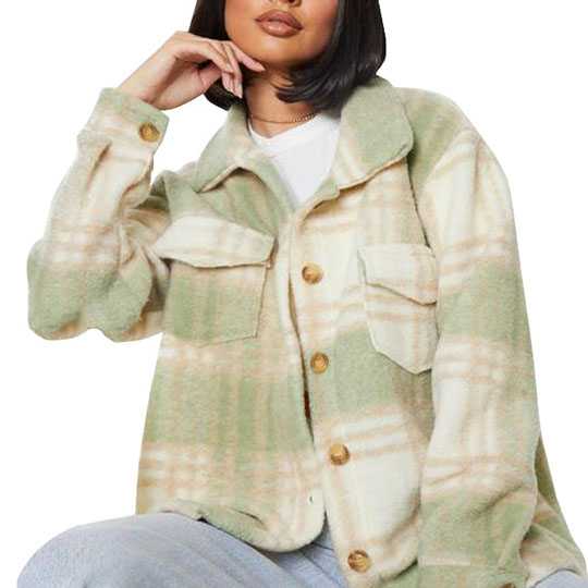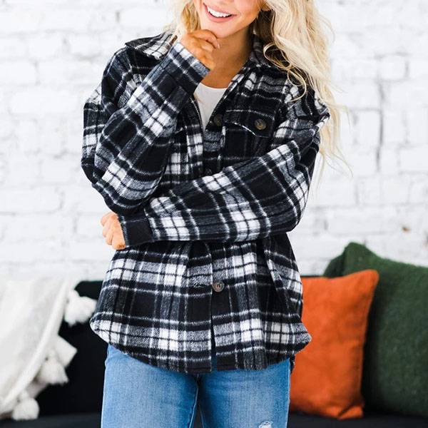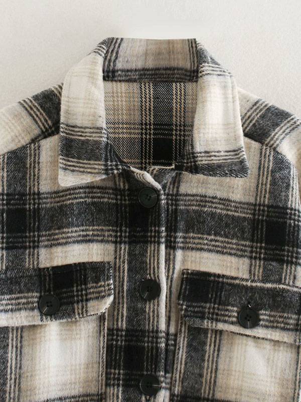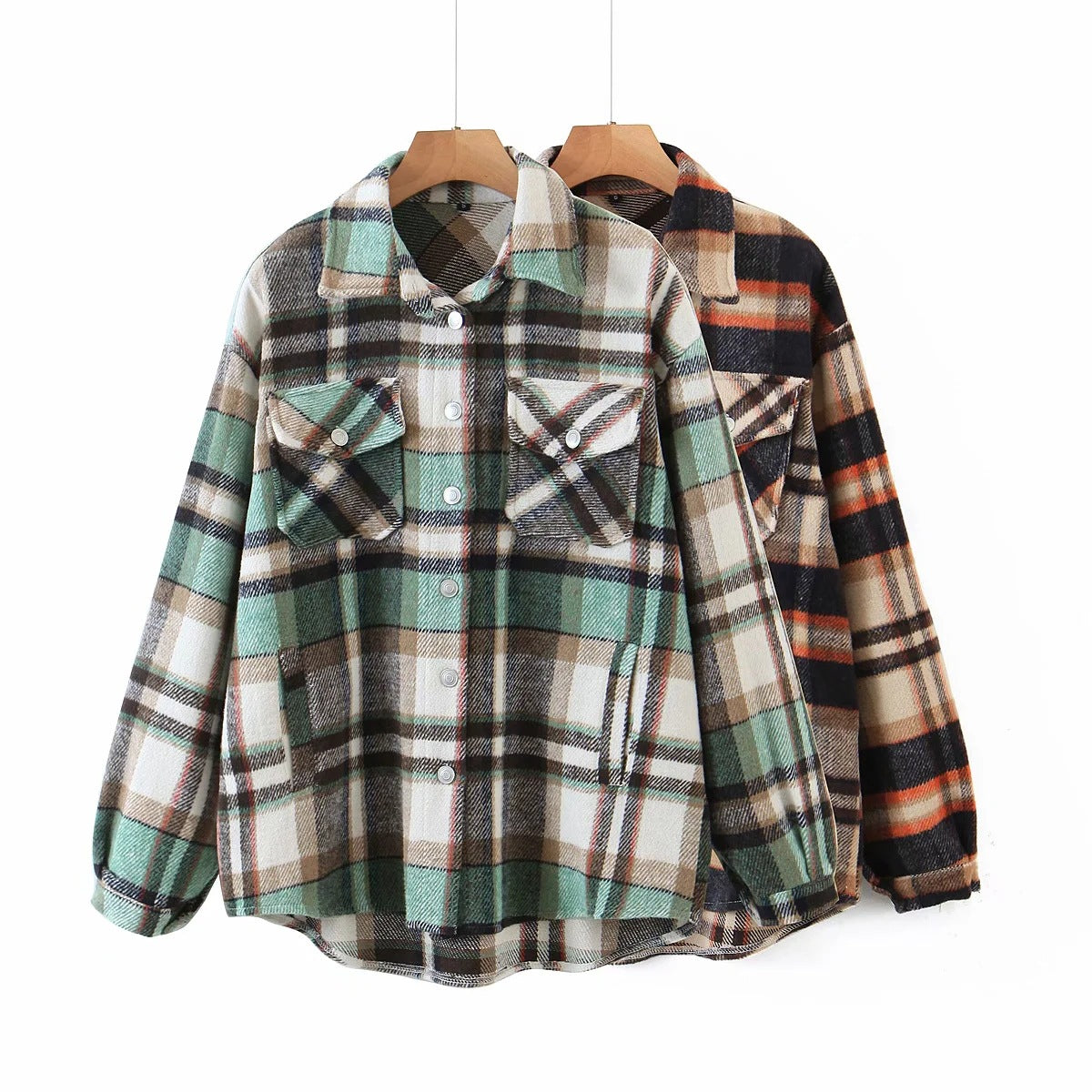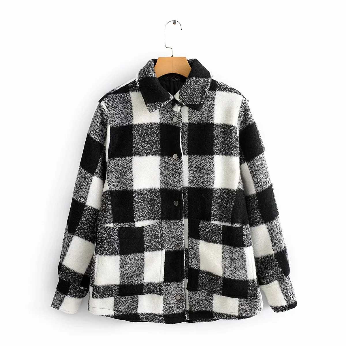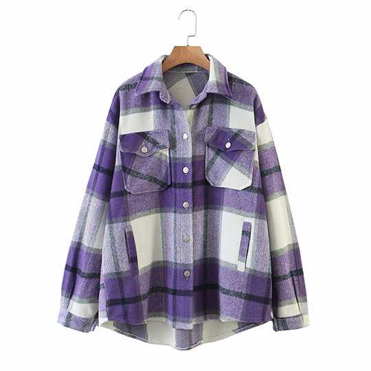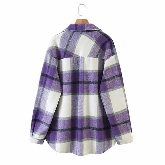 Classic Thick Colorblock Checked Button Down Shirt Jacket Woolen quantity