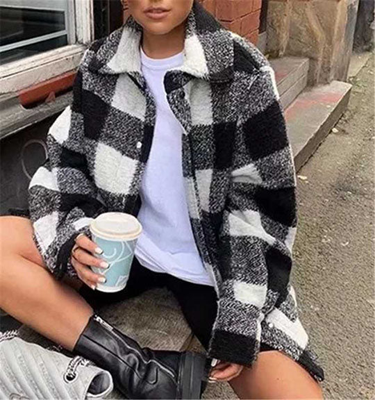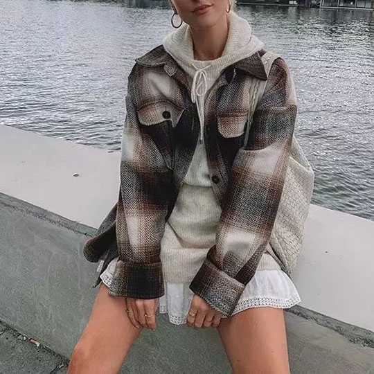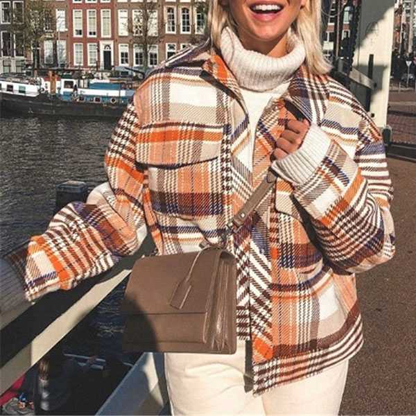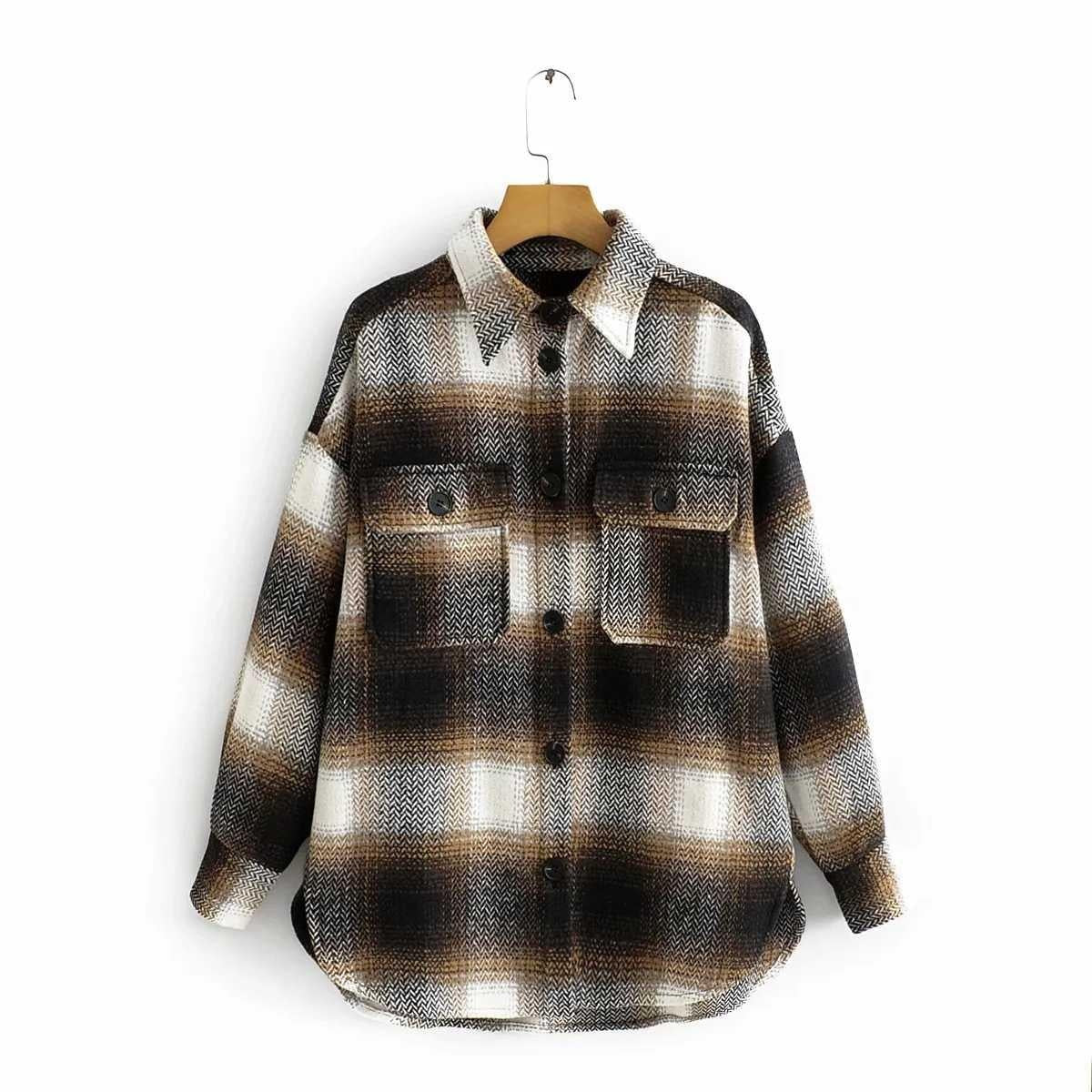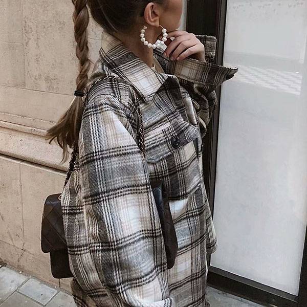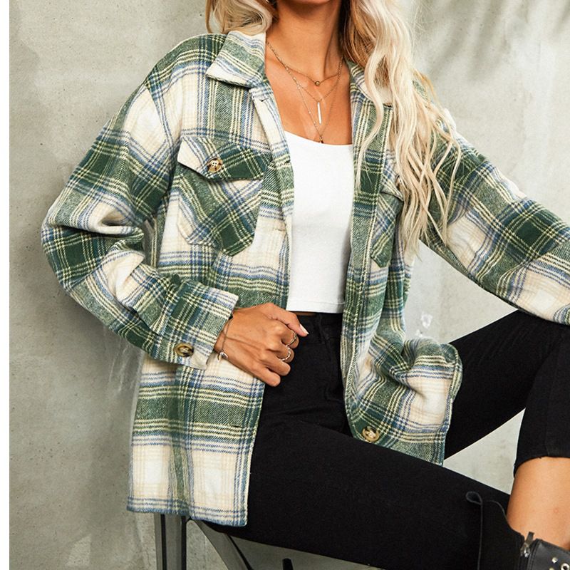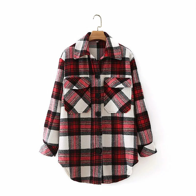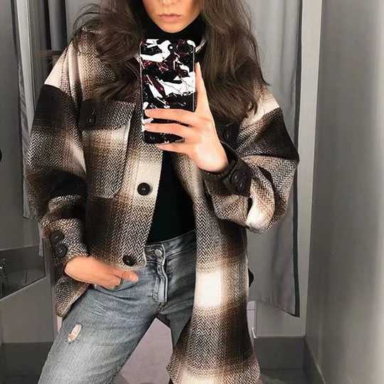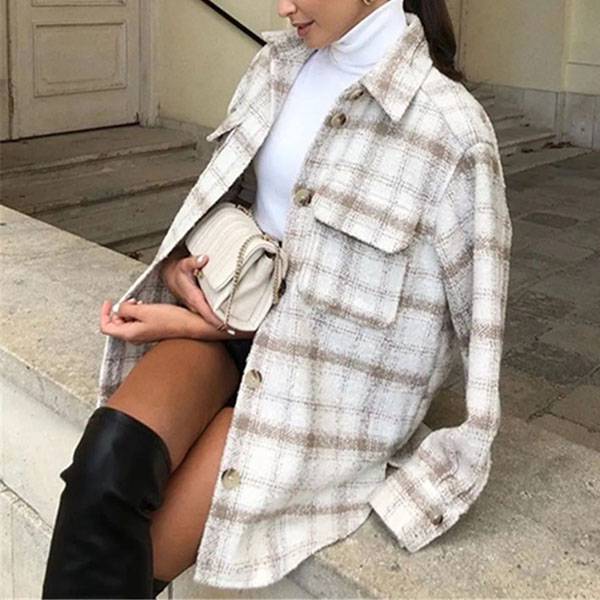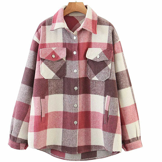 Classic Thick Colorblock Checked Button Down Shirt Jacket Woolen quantity
