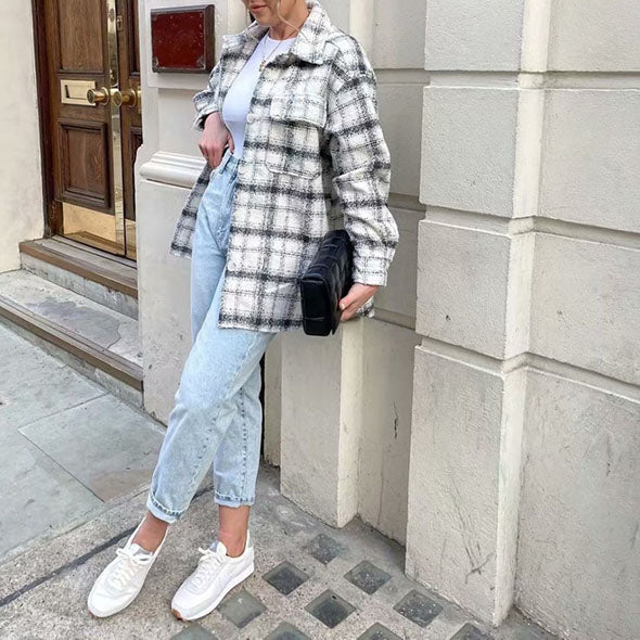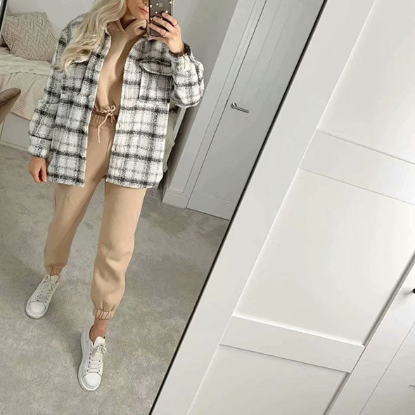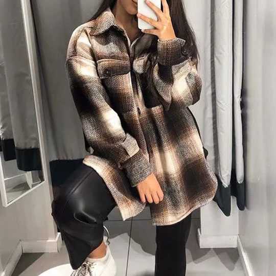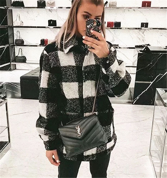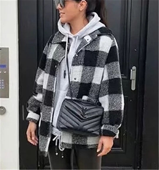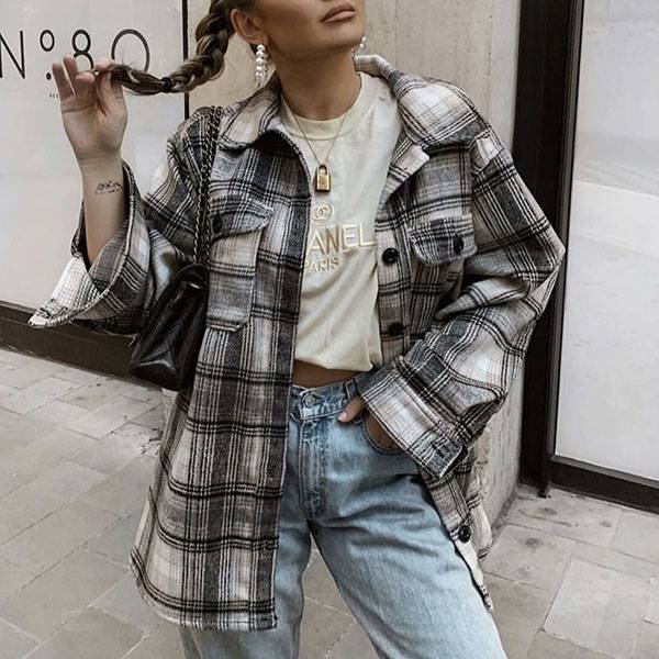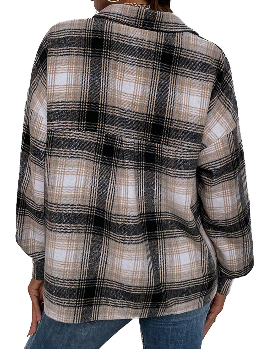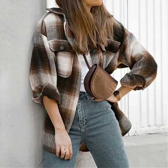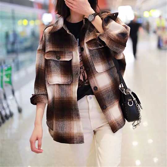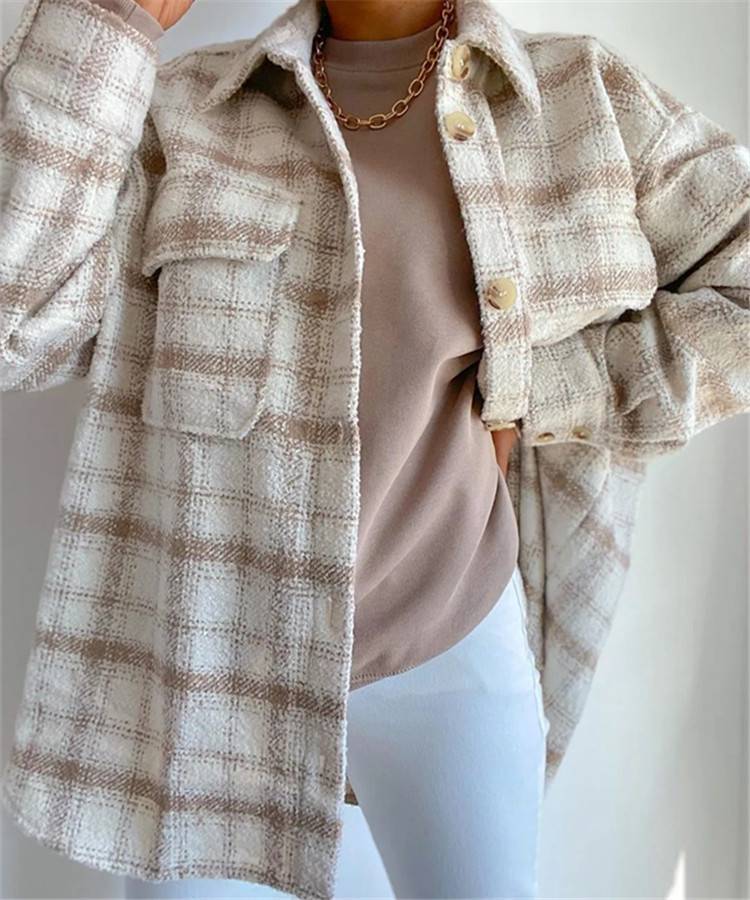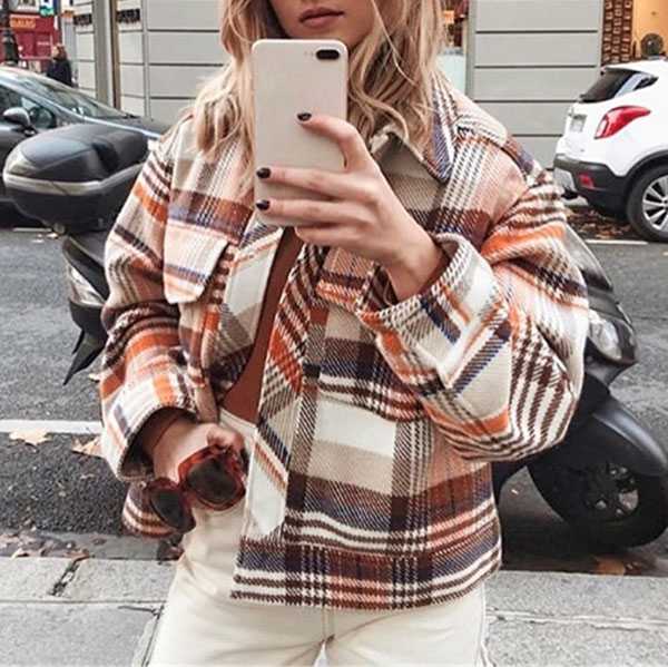 Classic Thick Colorblock Checked Button Down Shirt Jacket Woolen quantity