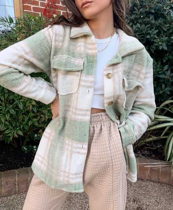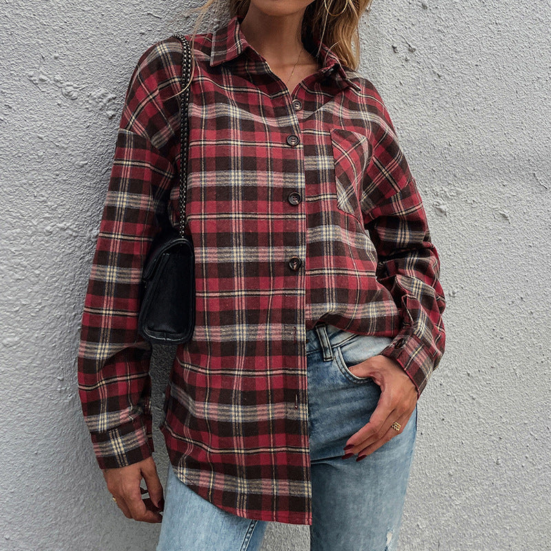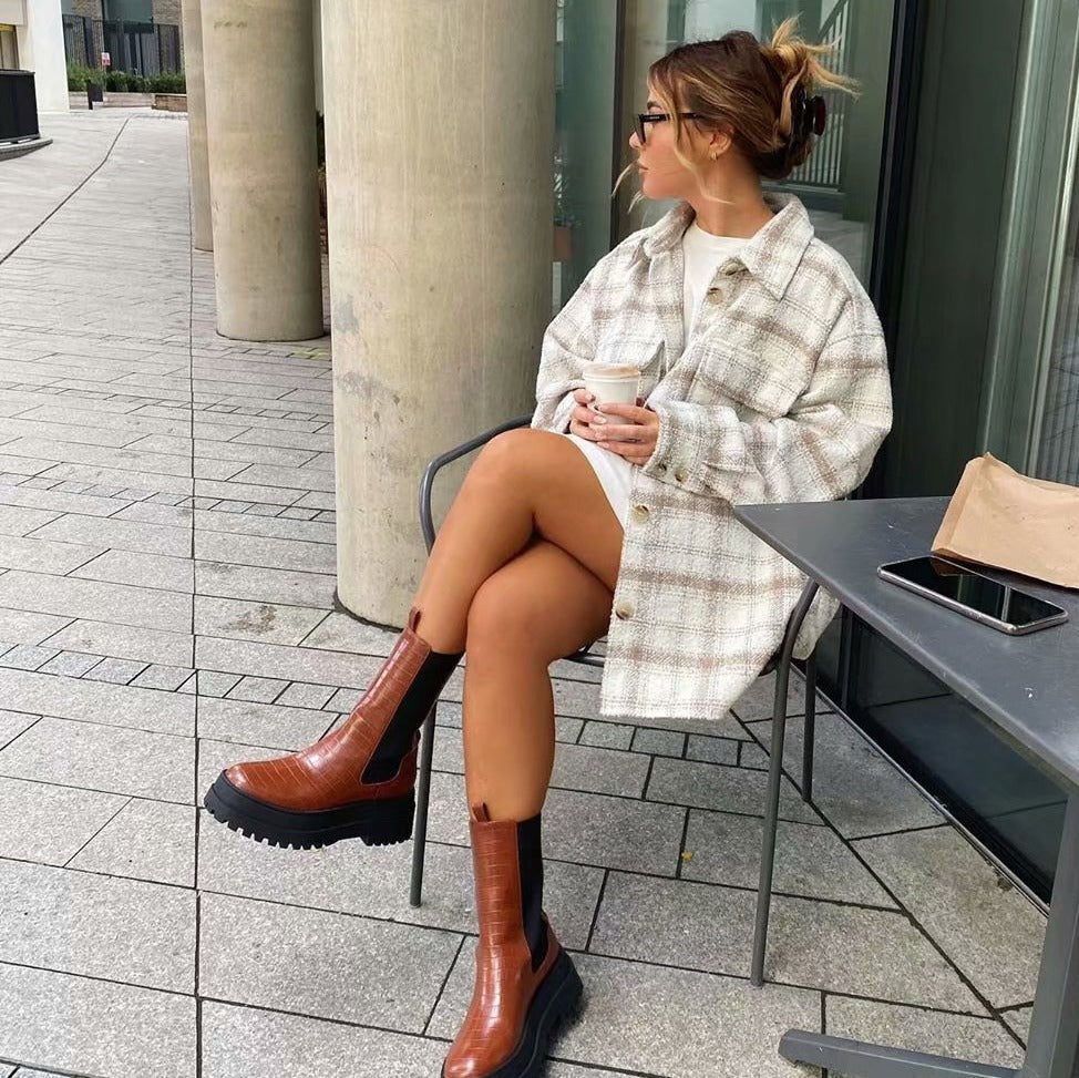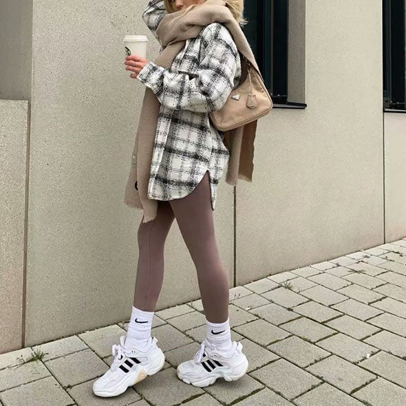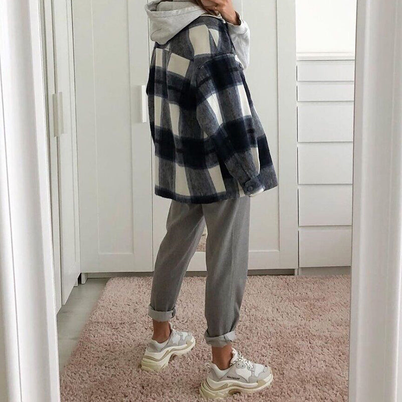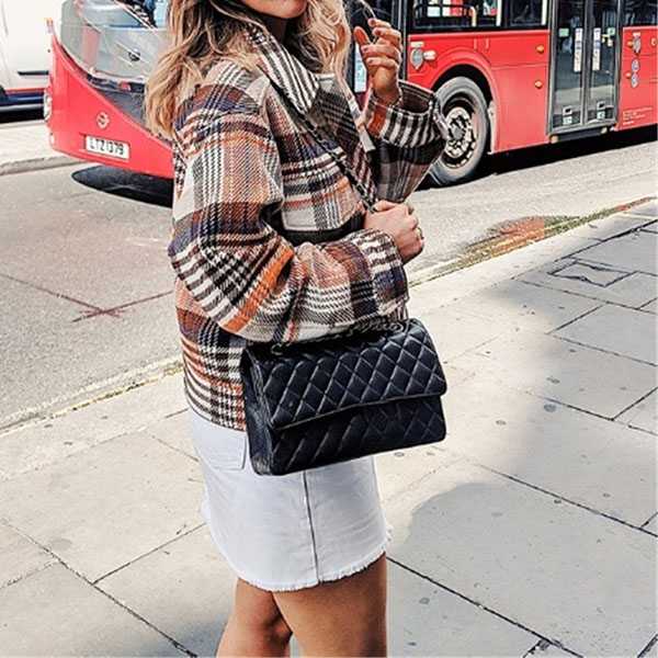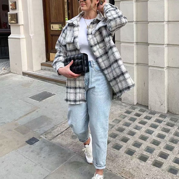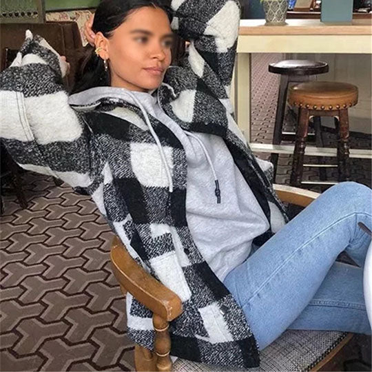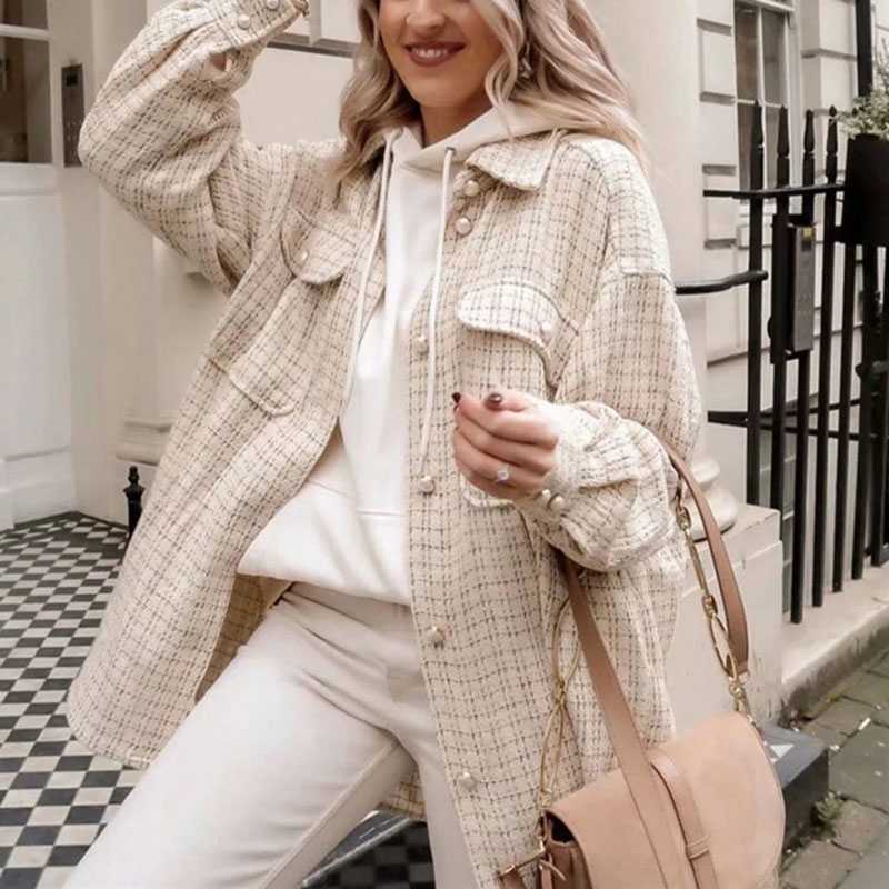 Classic Thick Colorblock Checked Button Down Shirt Jacket Woolen quantity