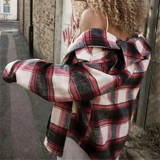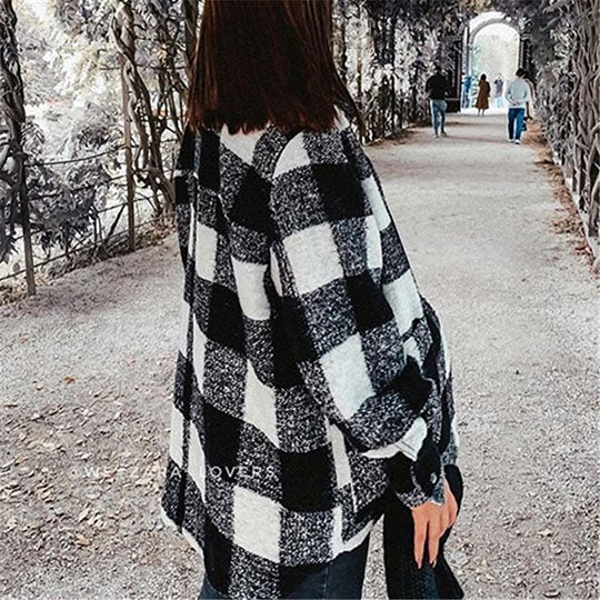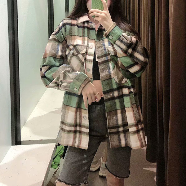 / Classic Thick Colorblock Checked Button Down Shirt Jacket Woolen