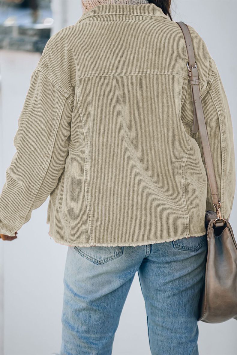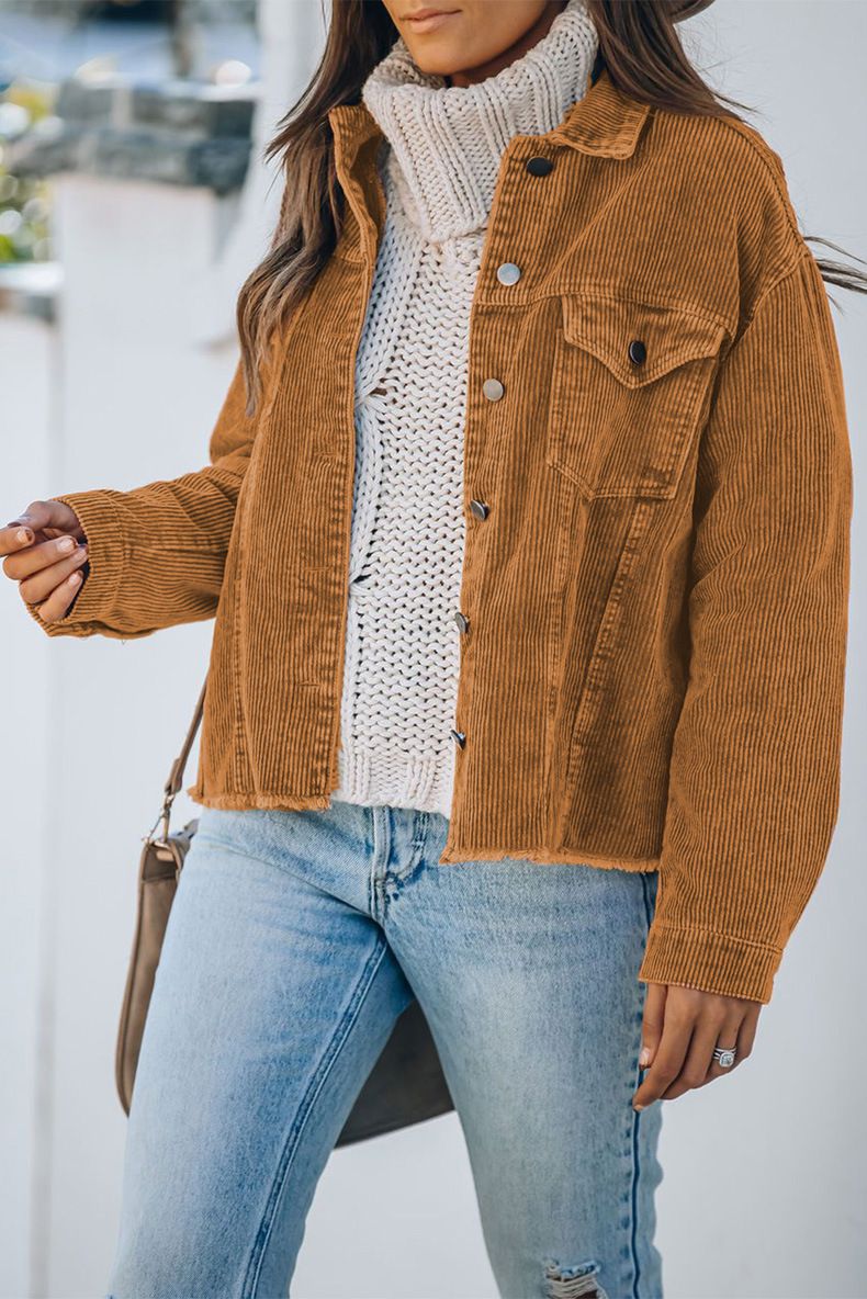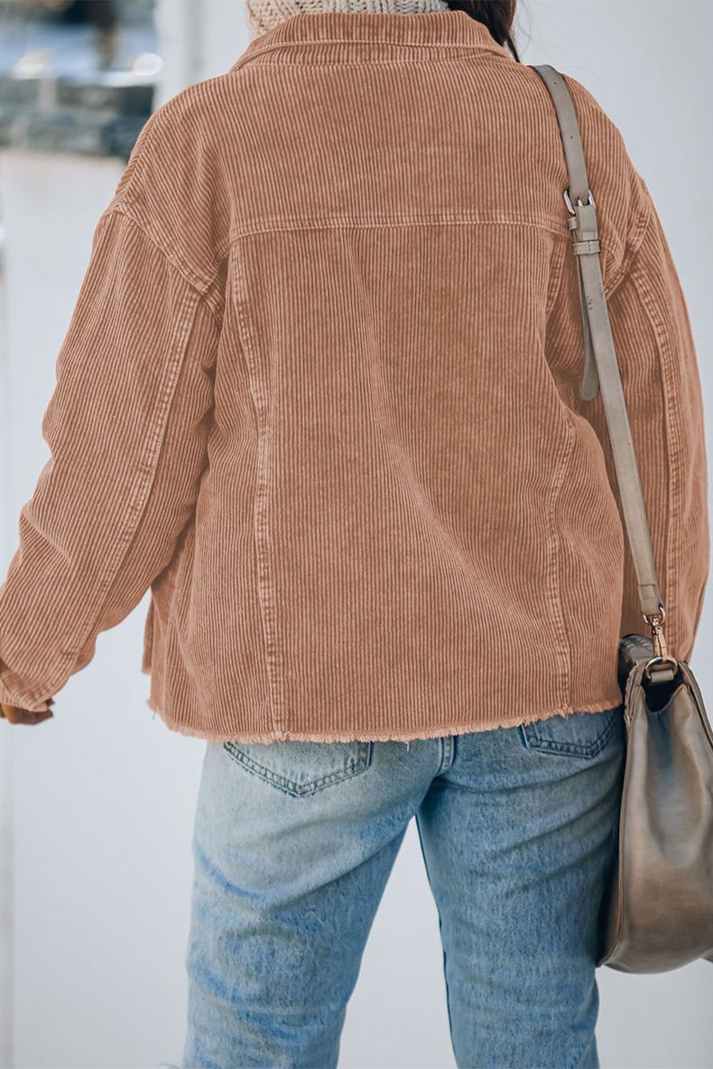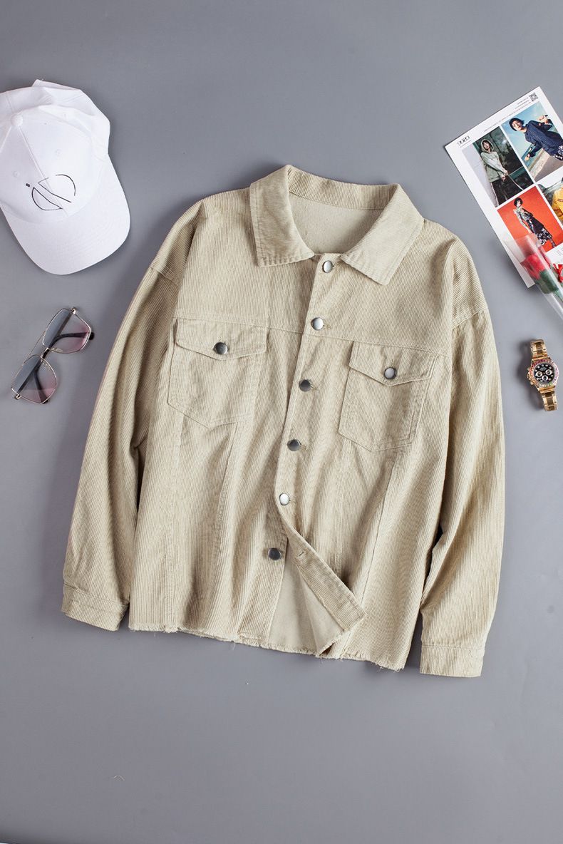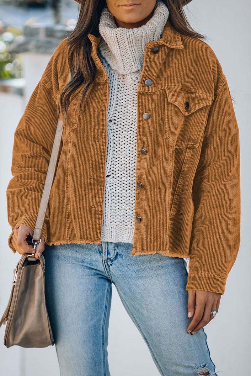 Ripped Hem Oversized Tan Corduroy Trucker Jacket Winter Cord Coat Womens