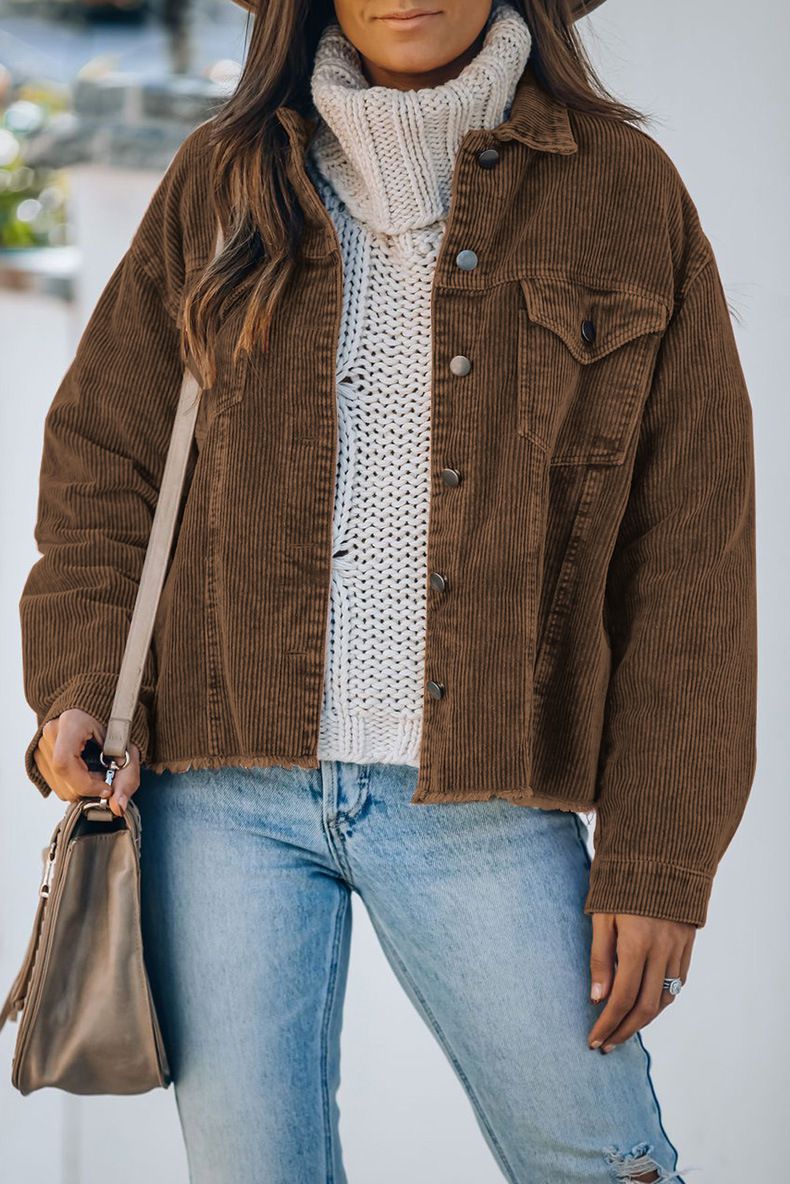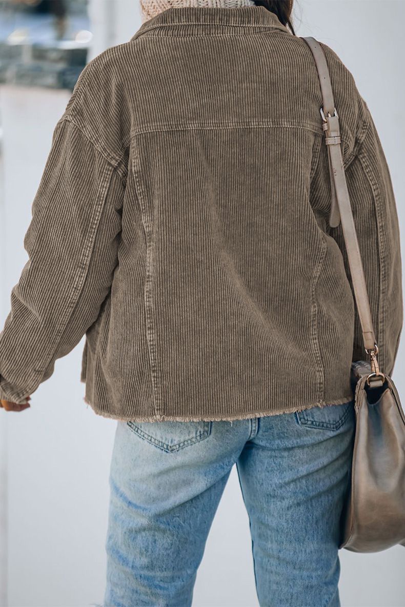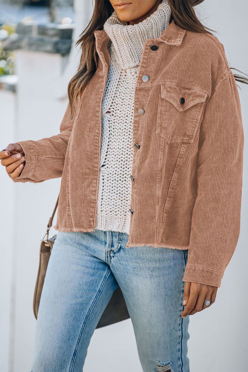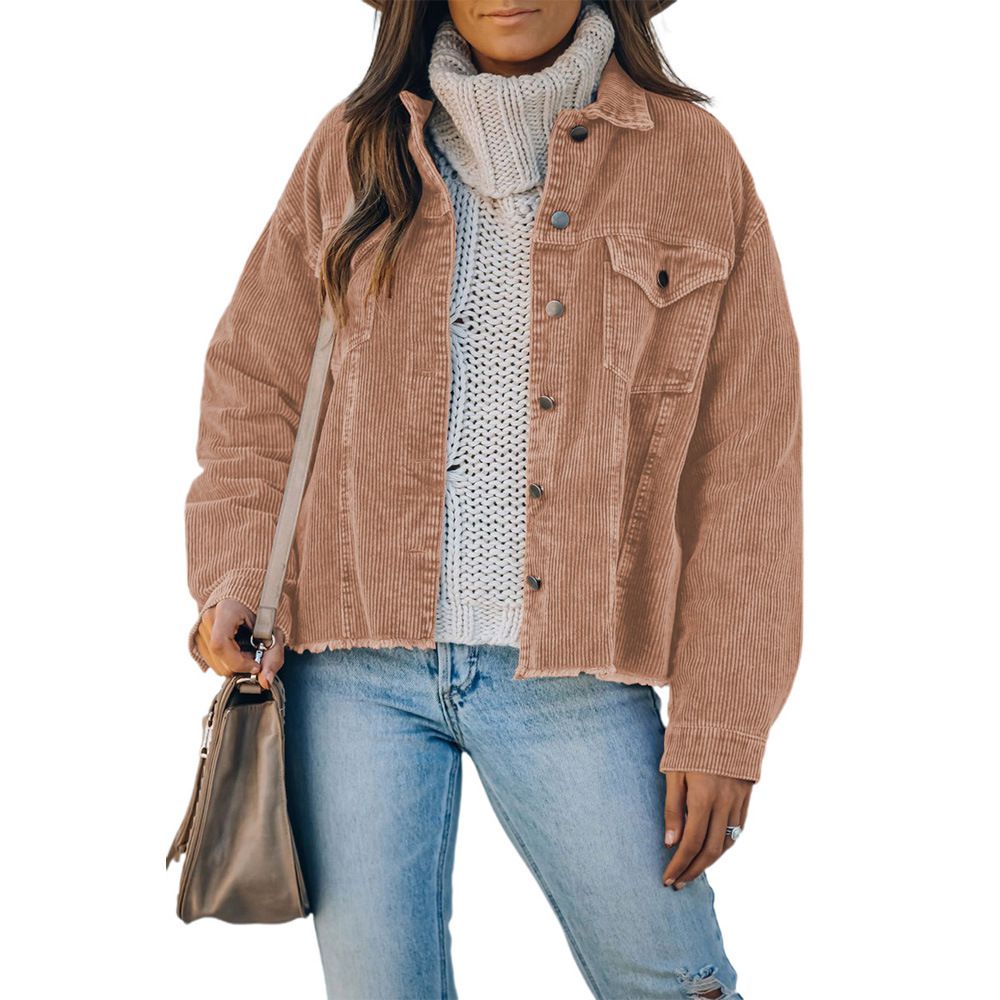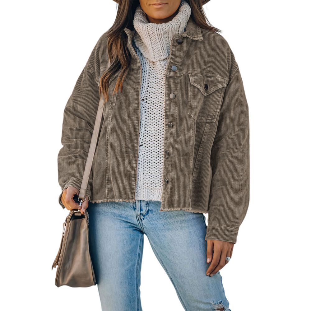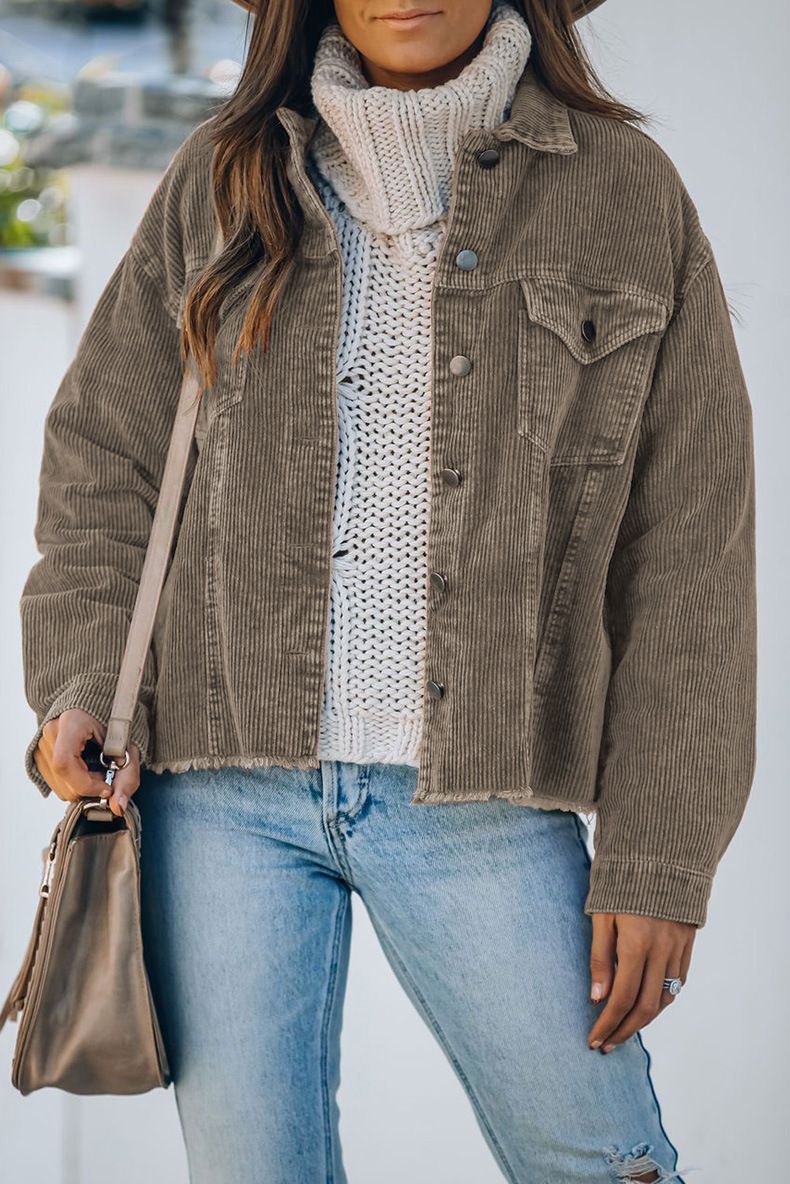Ripped Hem Oversized Tan Corduroy Trucker Jacket Winter Cord Coat Womens
