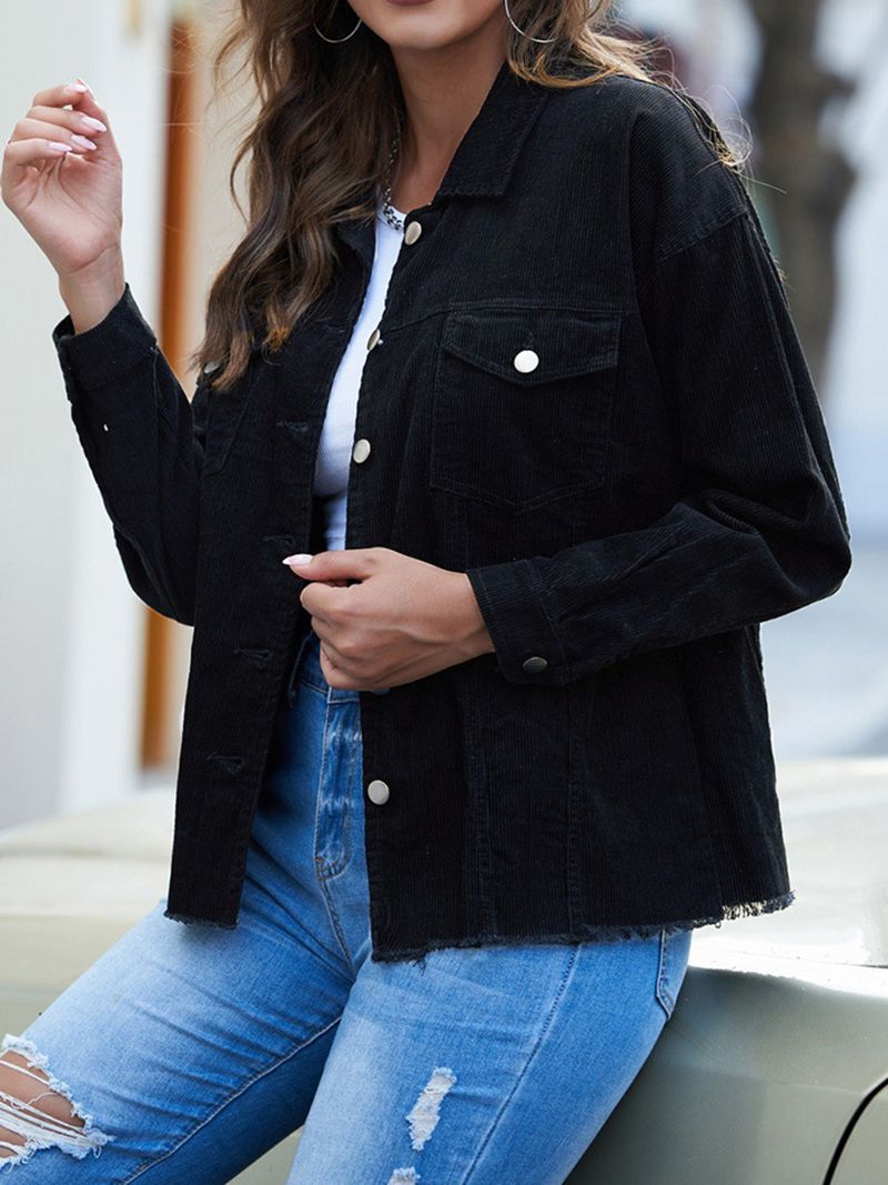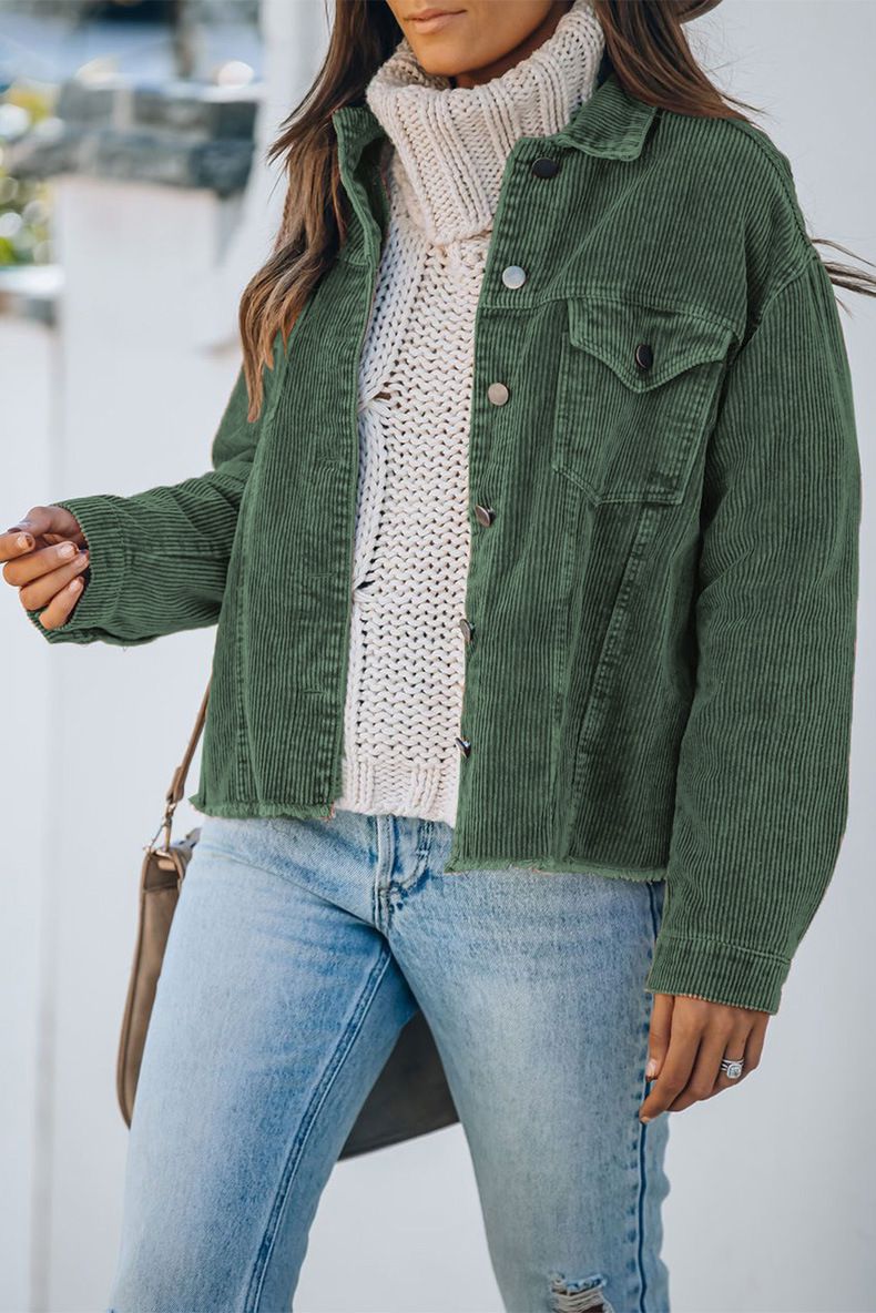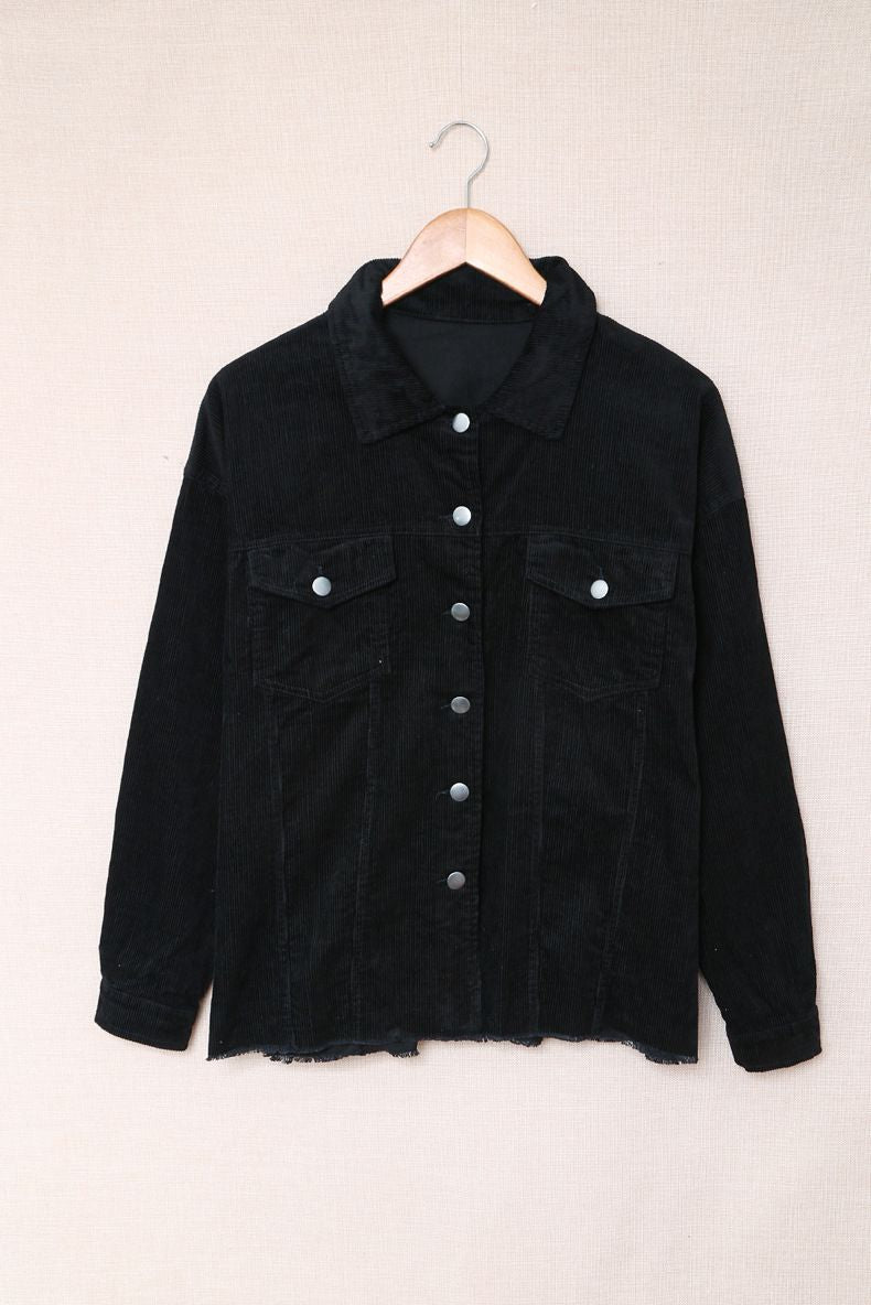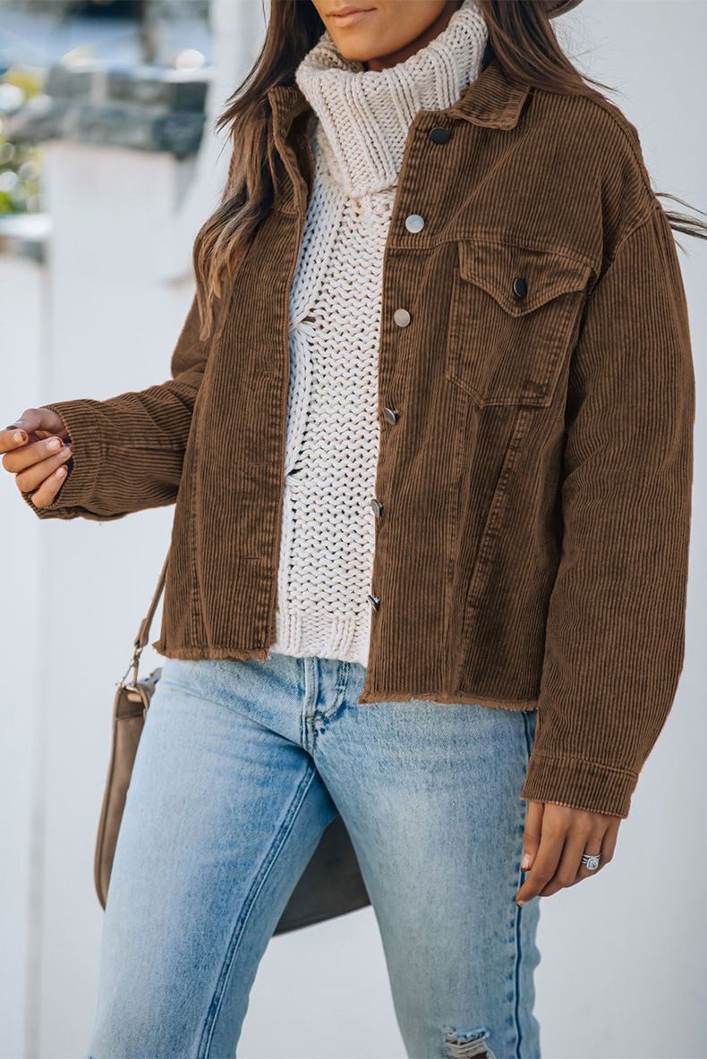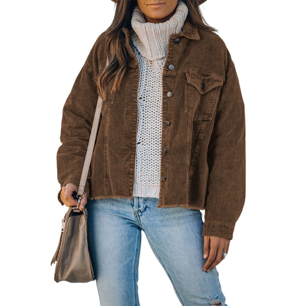 Ripped Hem Oversized Tan Corduroy Trucker Jacket Winter Cord Coat Womens
