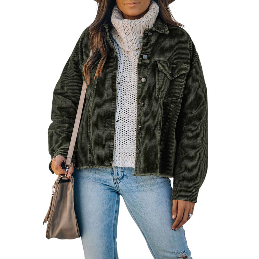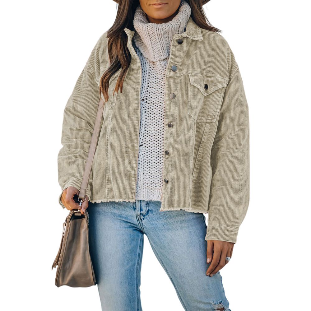 Ripped Hem Oversized Tan Corduroy Trucker Jacket Winter Cord Coat Womens quantity